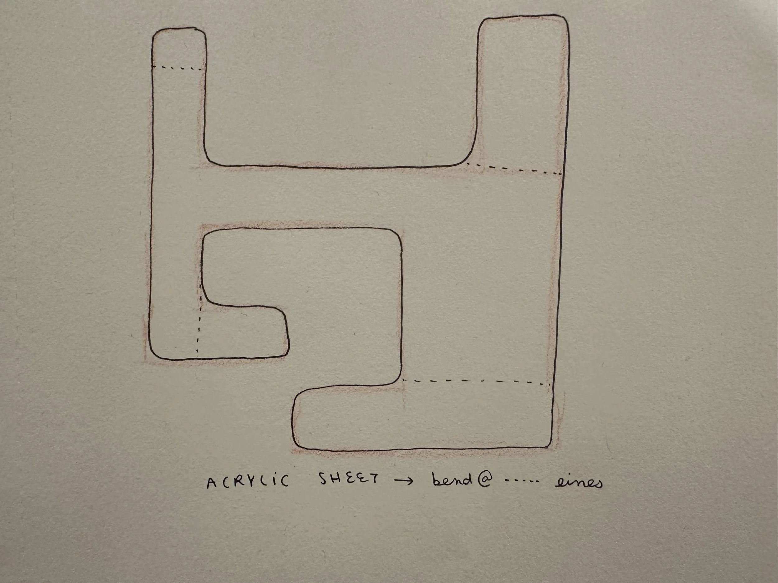 I created a paper prototype and then transferred that design to a .dxf file and manufactured the office accessory by laser cutting and bending acrylic.