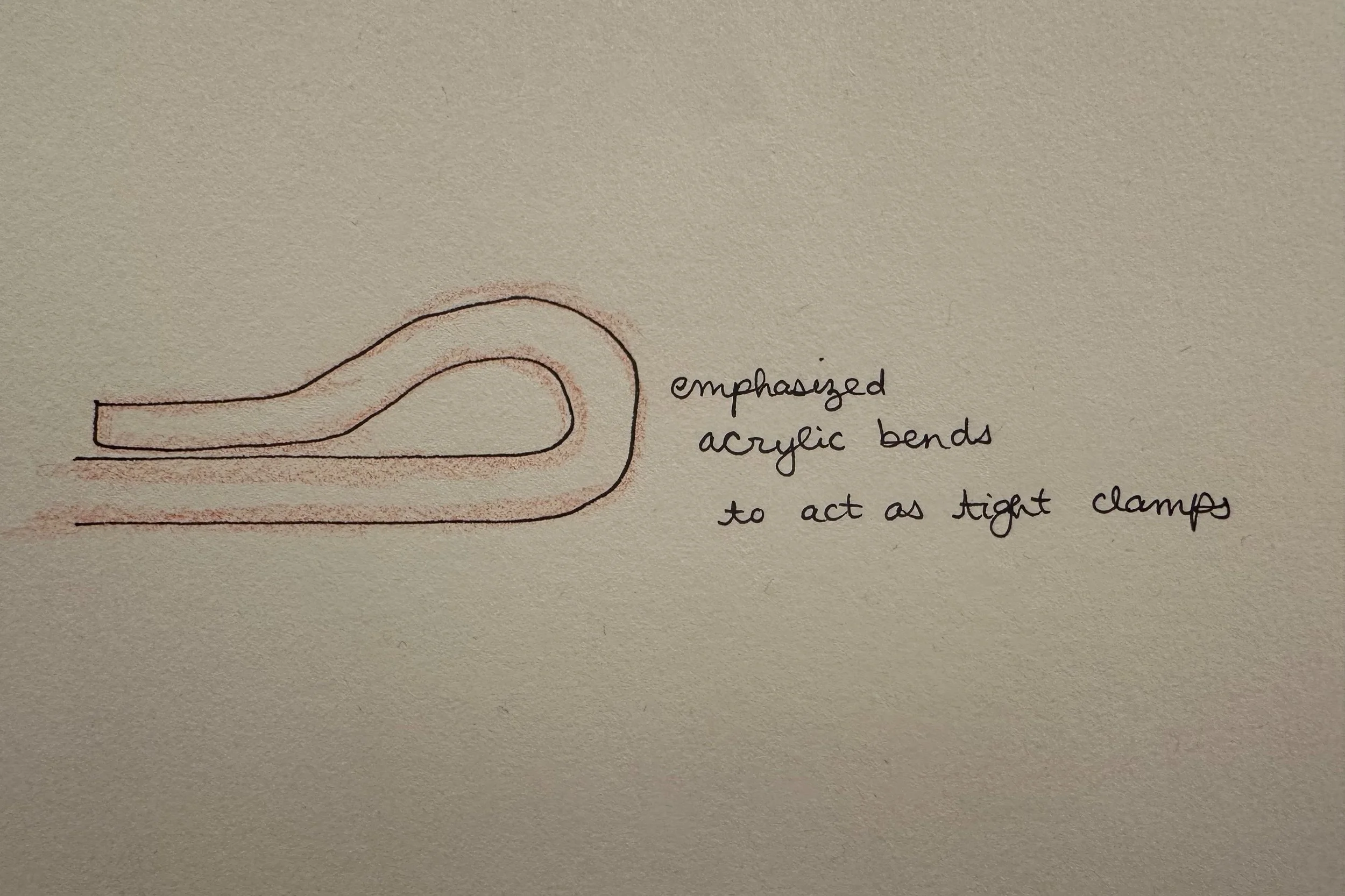 A sketch of what the .dxf would look like (left), and a quick sketch showing the clamping mechanism
