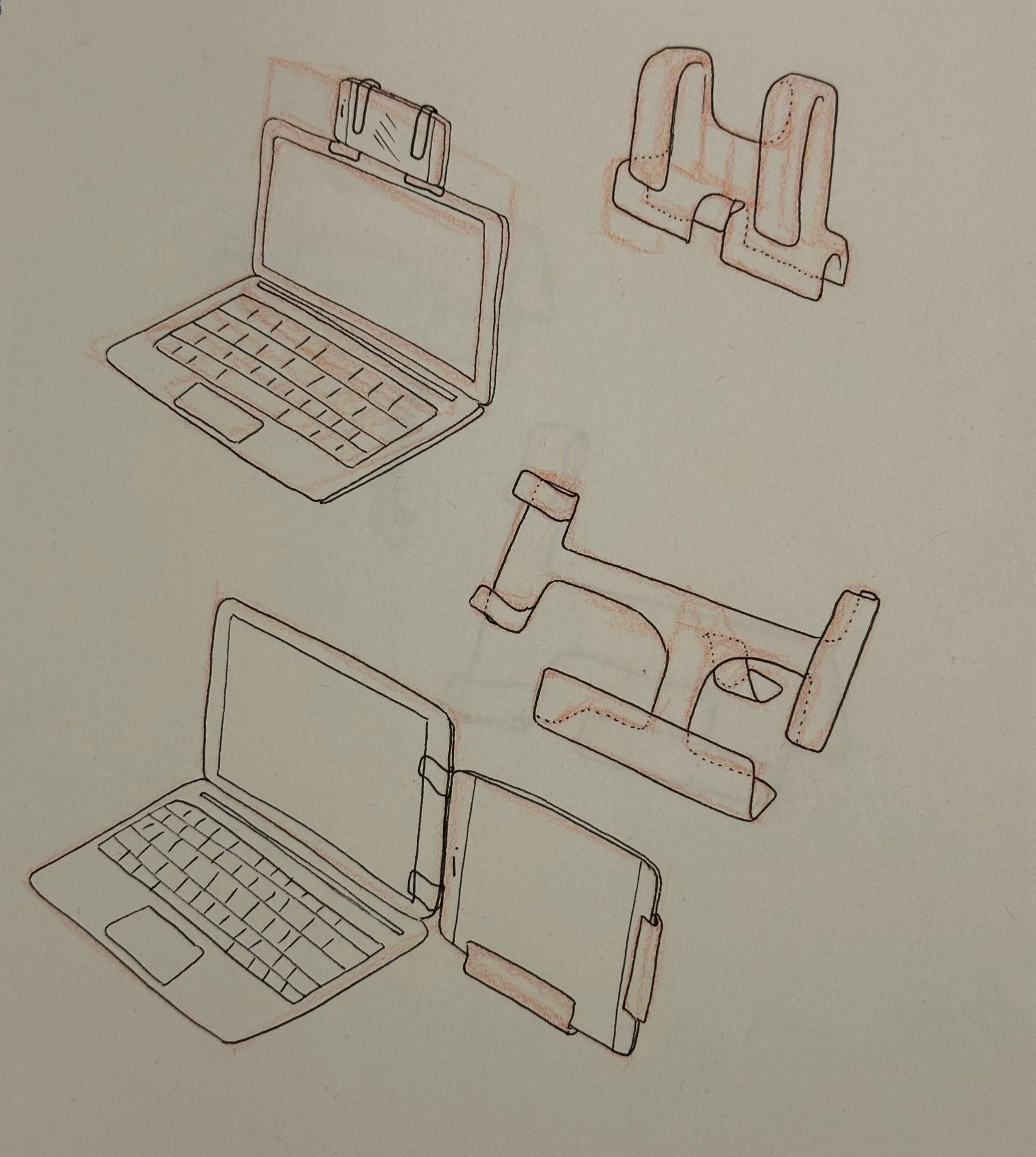 Concept sketches of various designs which would connect either an iPad or iPhone to a computer