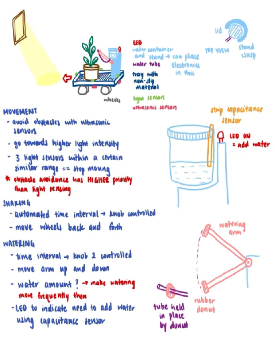 Plant care often has a lower priority in day-to-day life. Busy schedules, changes in priorities and a move back to in-person events have left plant owners without enough time to properly care for plants, necessitating the development of an autonomous robot that provides hand and hassle-free plant care.